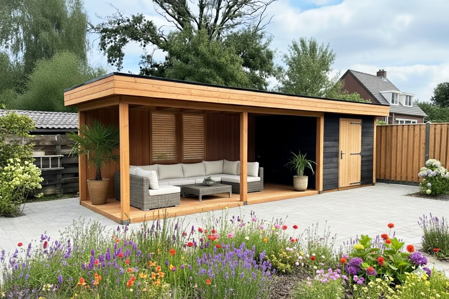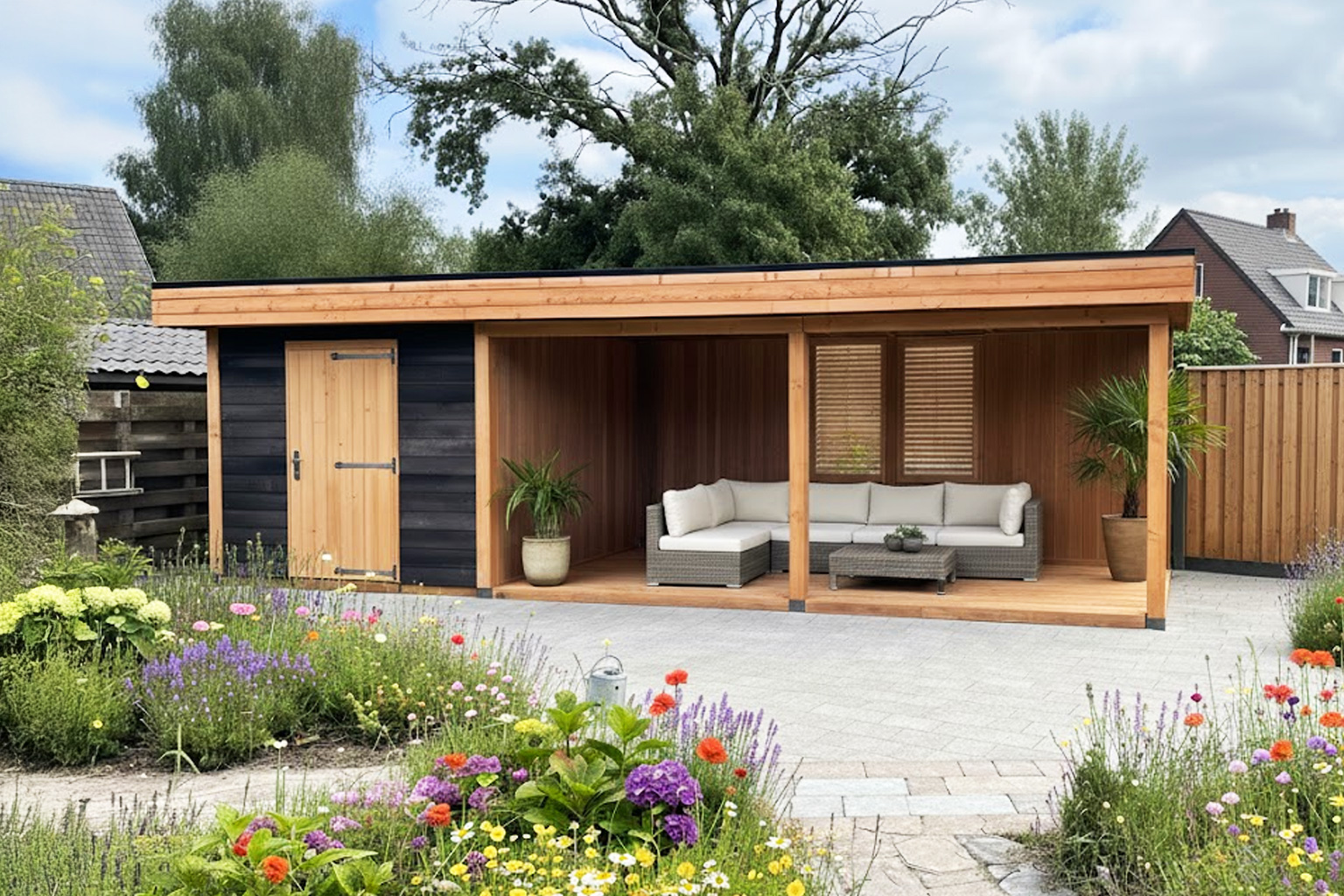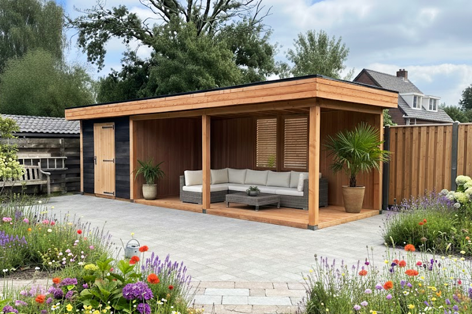 Overkapping Overijssel met berging 200x300cm + overkapping 300 tot 600cm
